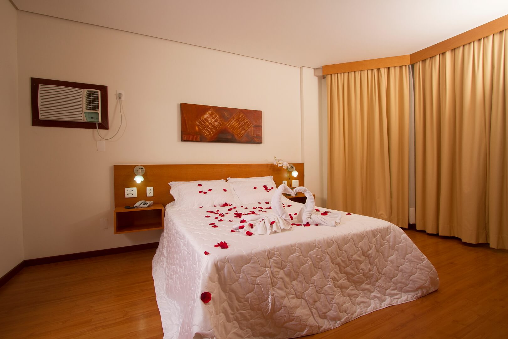 Temos um espaço perfeito para sua noite de núpcias. Oferecemos duas opções para a noite de núpcias: Kit de Núpcias Clássico ou Premium. Em ambas modalidades oferecemos uma decoração especial com enxoval diferenciado, além de espumante (alcoólico ou não), petiscos, espuma e sais de banho, café da manhã especial servido no apartamento, late check out e muito mais. Entre em contato para saber mais sobre nossos kits de núpcias. Será um prazer para nós recebê-lo(a) em um momento tão especial.